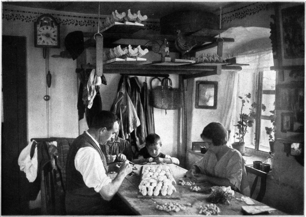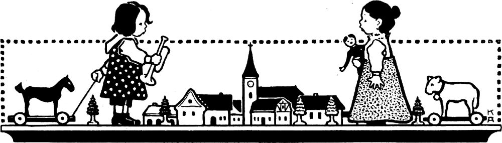 Sie wandern von Hand zu Hand, bis des Pinsels buntende Kraft die rohen Gestalten gar unterschiedlich beseelt. Kinderhand hilft mit beim Schaffen von wundersamem Spielrat und hölzernem Nutzgerät.
