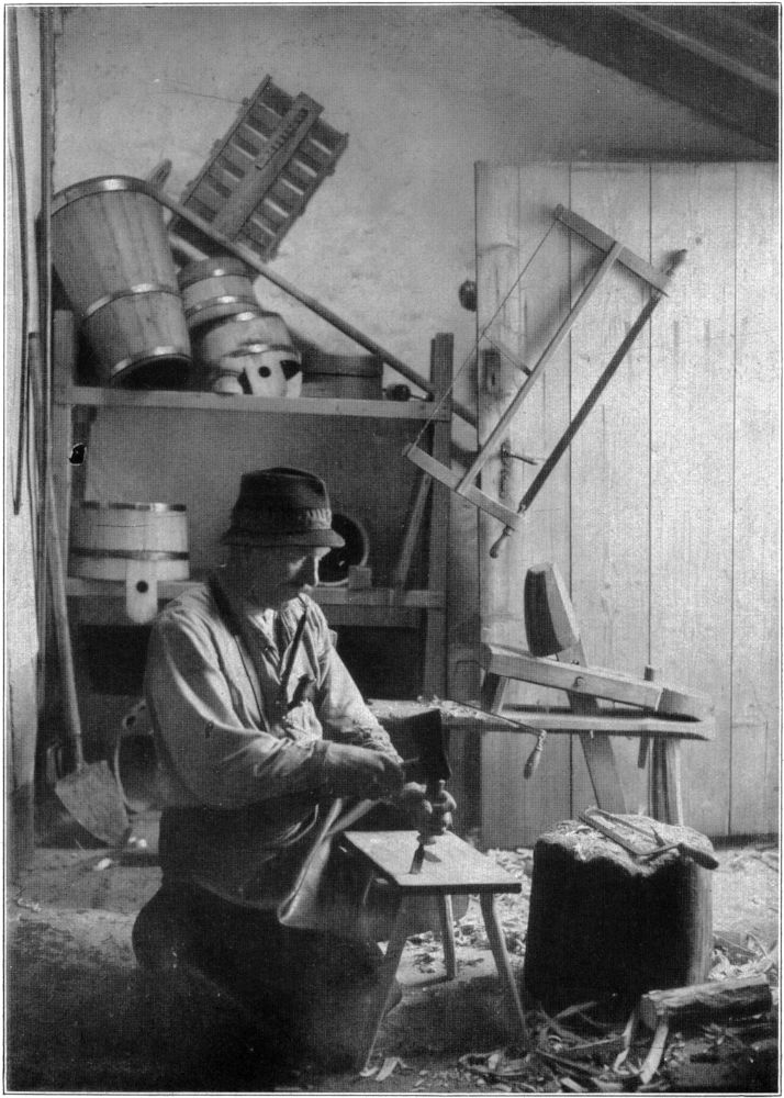 Aus Fichtenholz formt der Vater Schaufel, Mulde und Rechen, Nudelholz, Klopfer, Quirl und ander Küchengerät.