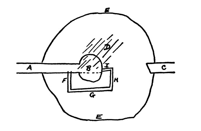 Again came a shot and a thud above him. The rifleman was shooting high in an effort to frighten him, thinking him on the floor and safe from harm. Well, he was not on[304] the floor. He was high up in the dome, in the direct line of the bullets. Let them fire! What mattered it? He had seen the configuration on Mars which was to make him famous. That, or he had lost his reason. What mattered it? Let them shoot!