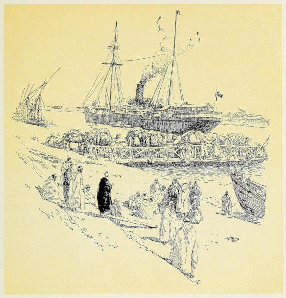There was an apparition of a city over the sea ahead of us. It was so delicate that the primrose of sunrise, deepened in inclosed and quiet waters, might in that place have conspired to produce a mirage of one’s bright expectations. That was the gate to all that romantic folk with a meaning eager but scarcely articulate call the Orient. Yet which of us is not romantic when we see it for the first time? I watched that gate heighten and become material as our ship insensibly approached it, till I could read on the seaward brow of this entrance to romance the famous legends, “Topman’s Tea” and “Macgregor’s Whisky.” Port Said, you soon discover, is just like that.