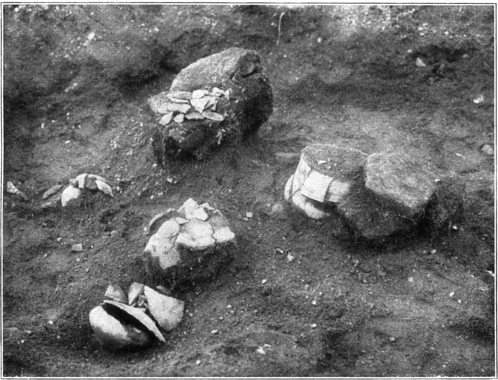 Die Gefäße stehen nun zum Trocknen. Je zwei werden genau übereinandergepaßt aufgestellt und von Zeit zu Zeit umgedreht, damit das Wasser gleichmäßig heraustrocknet, ohne daß die Form sich wirft. Es ist viel mehr sorgfältige Arbeit um einen Topf, als die Frau in ihrer Küche weiß.