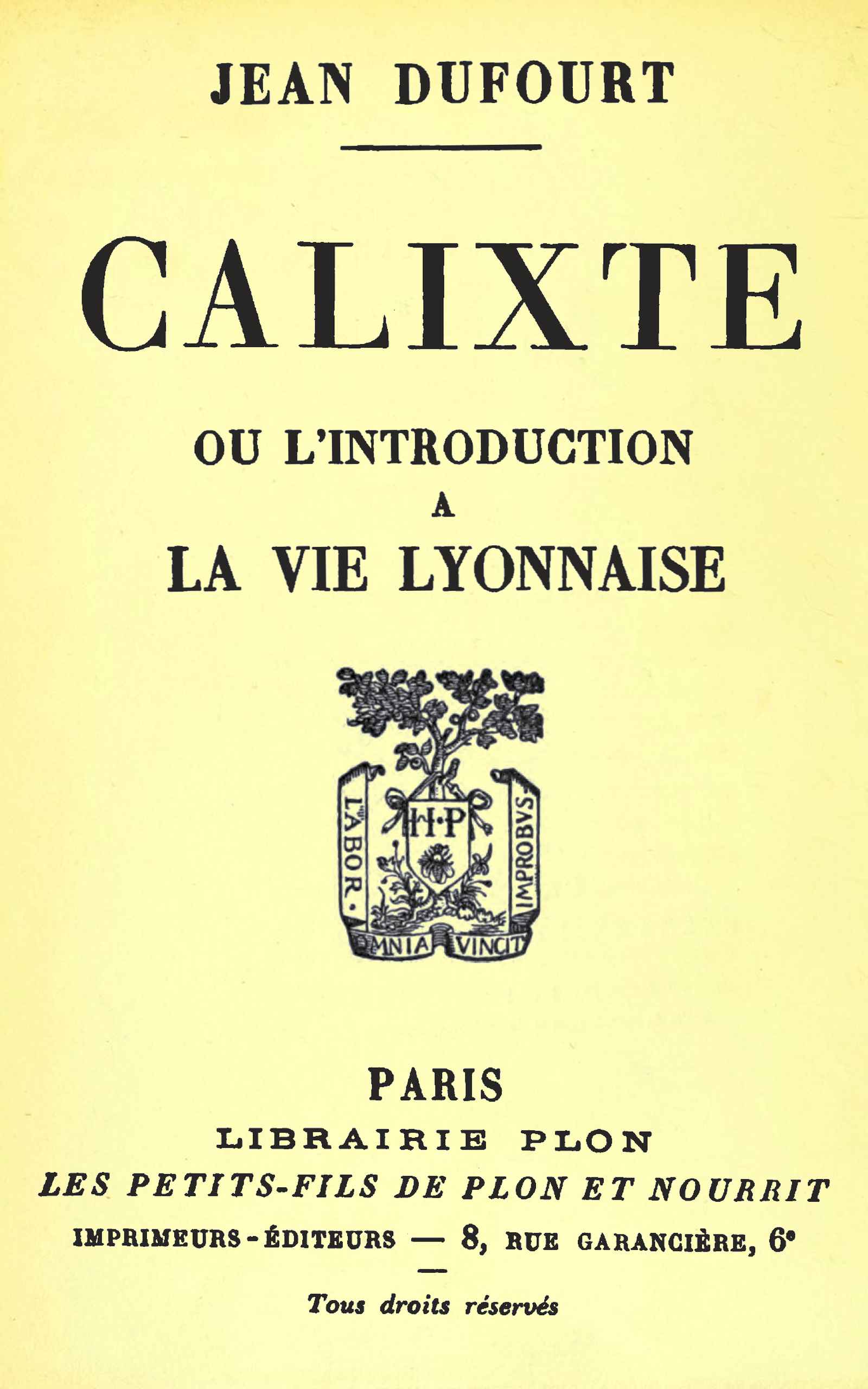 Title: Calixte; ou, l'introduction à la vie lyonnaise
