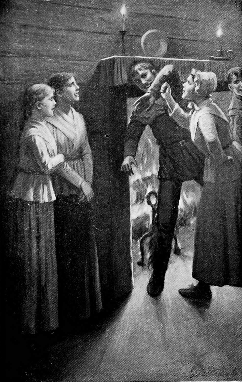 It was in October that Parker and Agnes took possession of their little home, and there was a great housewarming, which those for miles around attended. They were all there, the friends who had stood shoulder to shoulder with the young couple when they first started to win their way in the wilderness—Dod Hunter and his strapping sons, the M’Cleans, all but Archie, Jeanie and David Campbell, Dr. Flint, Jimmy O’Neill, and last, but not least, Polly, who was the life of the occasion, and, it is reported, nearly persuaded the minister to dance an Irish jig, so “delutherin’” was she, but it was Carter who told this, and its accuracy may be judged accordingly. Carter, be it said, vied with Polly in his lively efforts to make every one have a good time.