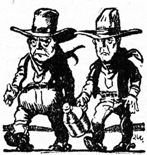 “I’ve been laughin’ m’self hoarse for two days,” says Dog-Rib. “Them there San Pabloers are goin’ to put on a play-actin’ show, with Hank Boll-Weevil Potts as the big he buzzard of the flock. Calls it The Curse of Drink. Haw, haw, haw! Can yuh imagine it? I can’t. I’ve seen shows in my life, I have.”