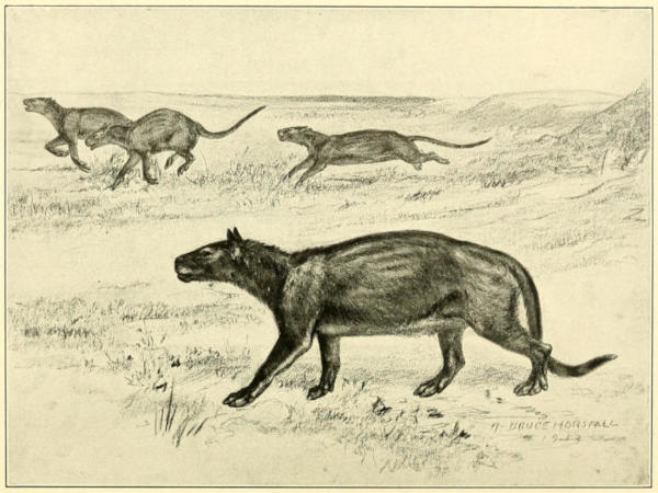 One afternoon in June, 1876, three Princeton undergraduates were lying under the trees on the canal bank, making a languid pretence of preparing for an examination. Suddenly, one of the trio remarked: “I have been reading an old magazine article which describes a fossil-collecting expedition in the West; why can’t we get up something of the kind?” The others replied, as with one voice, “We can; let’s do it.” This seemingly idle talk was, for Osborn and myself, a momentous one, for it completely changed the careers which, as we then believed, had been mapped out for us. The random suggestion led directly to the first of the Princeton palæontological expeditions, that of 1877, which took us to the “Bad Lands” of the Bridger region in southwestern Wyoming. The fascination of discovering and exhuming with our own hands the remains of the curious creatures which once inhabited North America, but became extinct ages ago, has proved an enduring delight. It was the wish to extend something of this fascinating interest to a wider circle, that occasioned the preparation of this book.