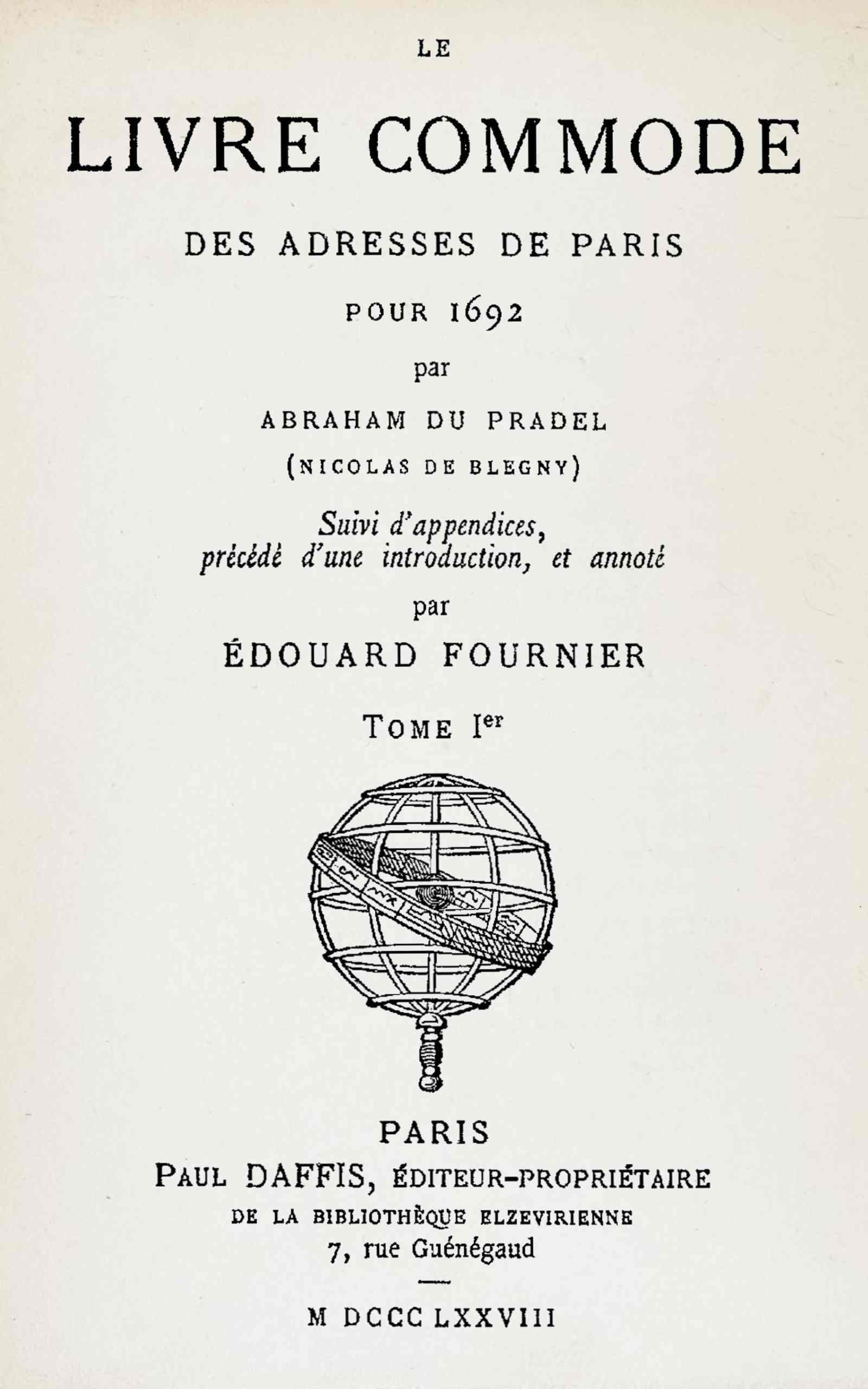 Title: Le livre commode des adresses de Paris pour 1692, tome 1/2