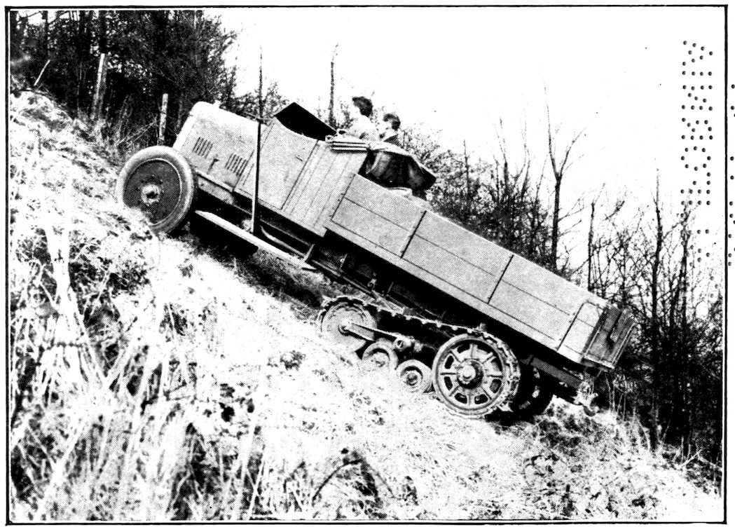 This is the problem which George Stephenson saw quite clearly, and solved within the limits of the conditions he worked in. He gave the world a one-dimensional movement of a superiority never dreamt of before his day, and this superiority recreated the civilized world. To-day, we can expand this movement to cover two dimensions and recreate the world again. One day it will be done, because the world is a roadless planet, but for us, as an Empire, it may be done too late. No government minds spending millions of pounds on some pet hobby—doles, pensions, cruisers, naval bases, 94worn-out coal pits, etc., etc., but no government so far has spent sixpence on roadless vehicles. A hundred thousand pounds or so judiciously expended on research and experiment might well result in the production of half a dozen efficient types of cross-country machines. Has no government the intelligence to understand this, or the imagination to see what it may lead to?