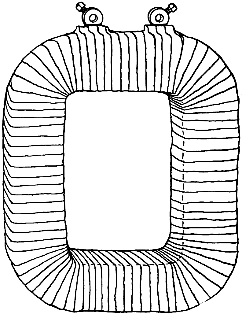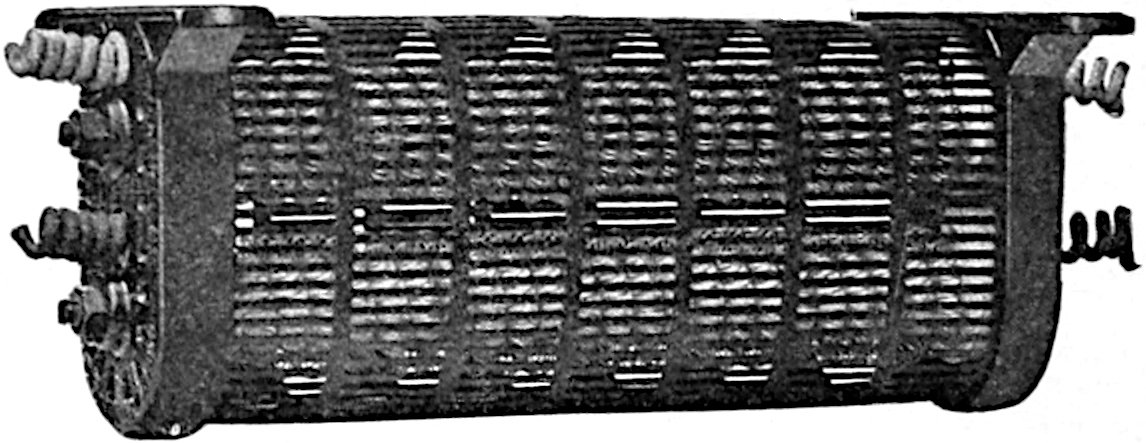 In order that it may overcome these difficulties, to some extent, at least, the single-phase motor presents certain modifications from the direct-current type, in that it has more field poles, and the entire magnetic circuit of field frame, cores, and pole pieces, is carefully laminated. The number of commutator segments is also increased, thus reducing the number of armature turns per coil, and there are special features introduced to prevent sparking, such as compensating windings which neutralize the effect of armature distortion; 141the use of narrow brushes; a type of armature winding which gives a low reactance per coil; the use of high resistance leads between the armature coils and commutator segments, etc.