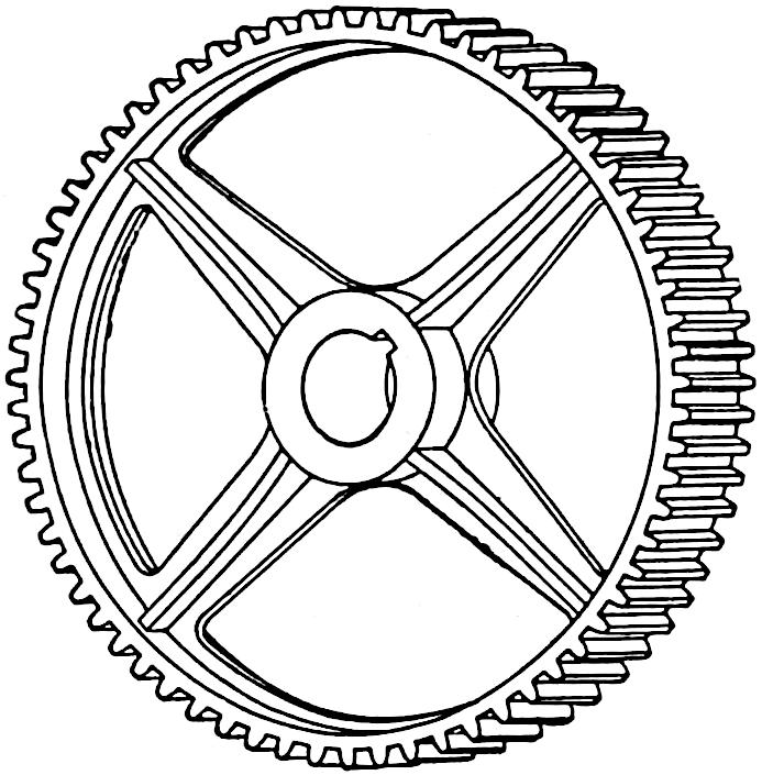 The voltage most commonly employed by electric railways is 500 to 600; and the motors are 500-volt direct-current series-wound motors, designed especially for railway service. The electric railway motor must be dustproof and waterproof because of the position it occupies under the car. For this reason electric railway motors are made in the form of a steel case (Fig. 2), which entirely surrounds the field-magnet poles and takes the place of the yokes or frames that support the fields on stationary motors. Cast steel is the material now usually employed for railway motor cases and fields, on account of its mechanical strength and its high magnetic permeability. The four poles project inwardly from the case, as seen in the open motor case, Fig. 3, which is that of a Westinghouse No. 69 motor.
