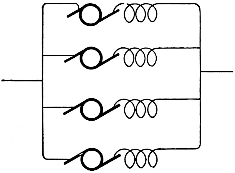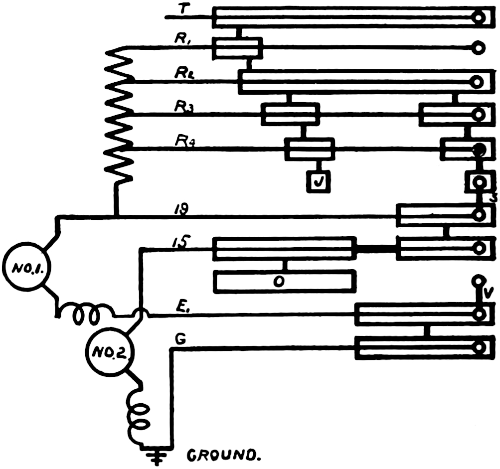 But should no current flow when the breaker is flashed on the 6th point it is reasonable to presume that the motors are O. K. and that the open is elsewhere. The ground for such a supposition is that as there is a path through each motor normally, there would necessarily be an open in each one to stop the current. It is hardly probable that such a coincidence would occur.