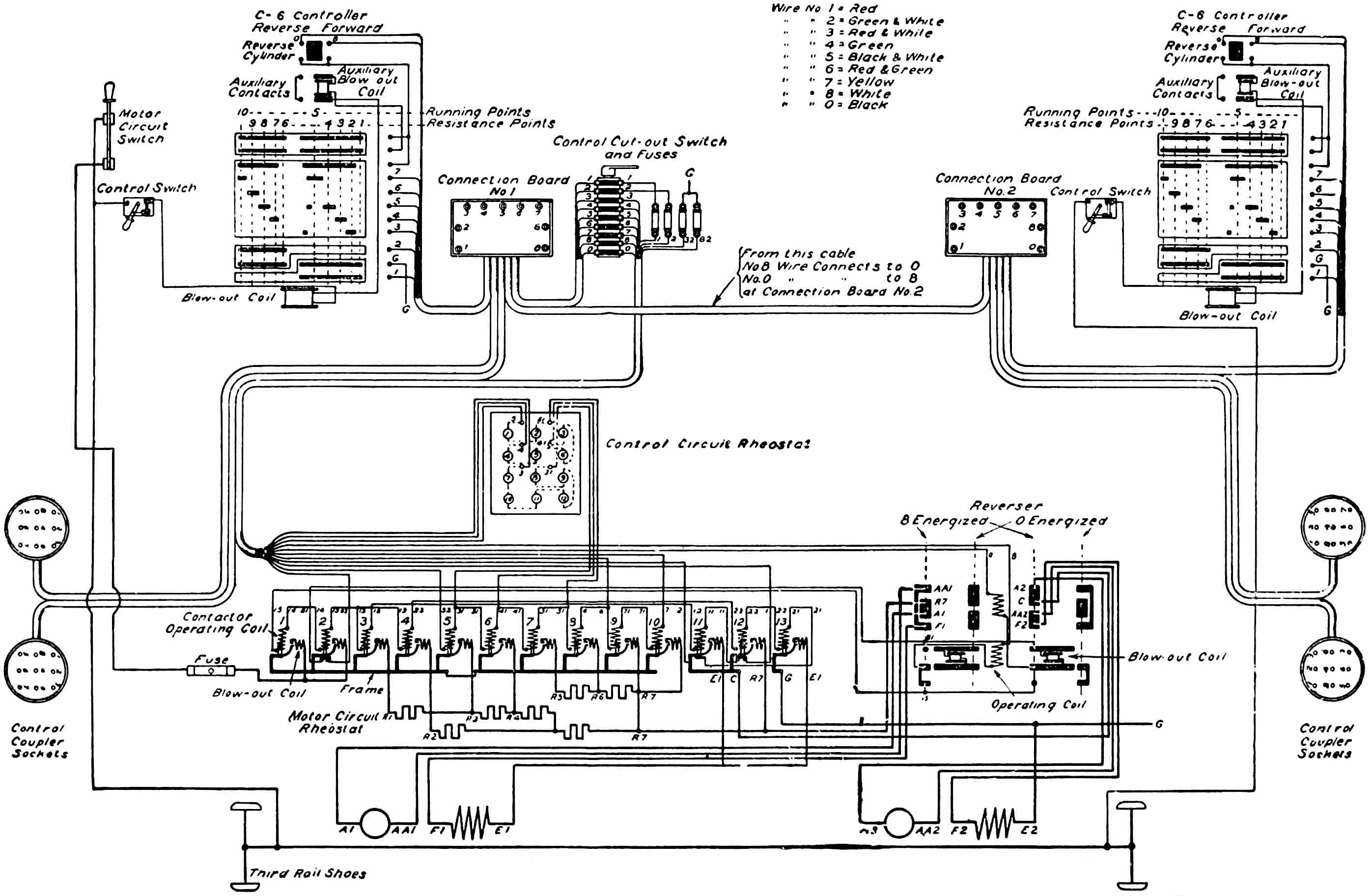 Defects in the wirings are those due to (1) open circuits, (2) short circuits. Open circuits make themselves evident by no flow of current, short circuits usually by a blowing of the fuse or opening of the breaker. The point of the short circuit or “ground” can be located roughly by noting on what point the fuse is blown. Accurate location can be made by cutting out the motors, disconnecting, etc., according to directions in the following pages. The tests outlined apply particularly to the K type of controller with two-motor equipment.