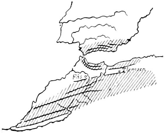 Beaucoup plus à l’est, au retour, en rentrant en Algérie, M. de Foucauld a relevé, entre Debdou et Oudjeda, une autre partie de la même zone naturelle.