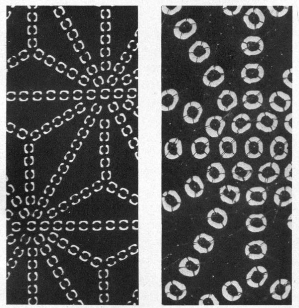 | As Used in South America, India, Philippines and U.S.—Variations in Tying Process—How Dyed—Tied and Discharged Work. | ||