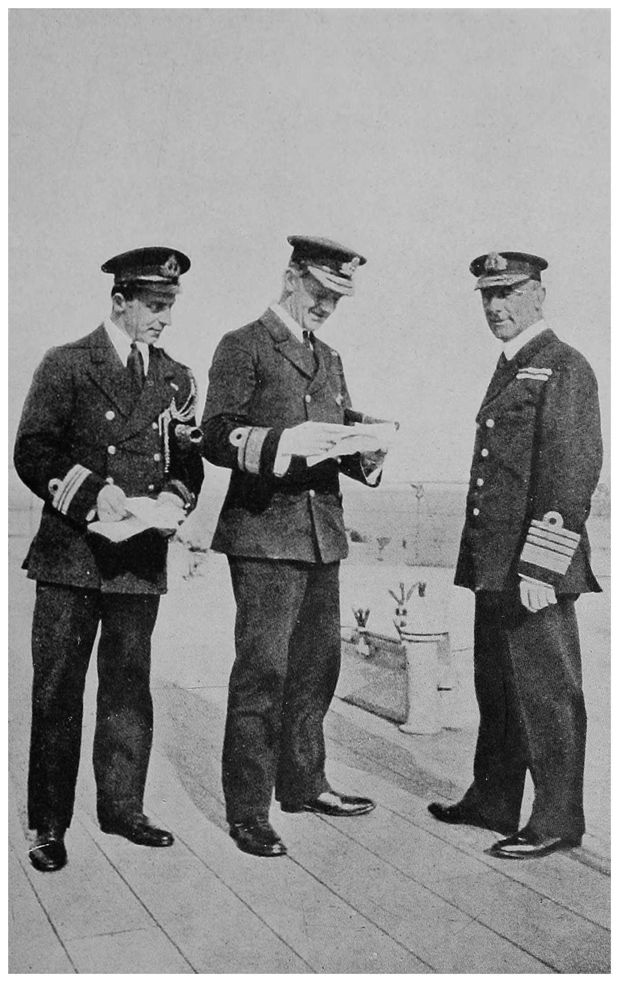 | The Commander-in-Chief, Captain of the Fleet (Commodore Lionel Halsey), and the Flag Lieutenant (Lieut.-Commander Herbert Fitzherbert) on Board H.M.S. Iron Duke | 96 |