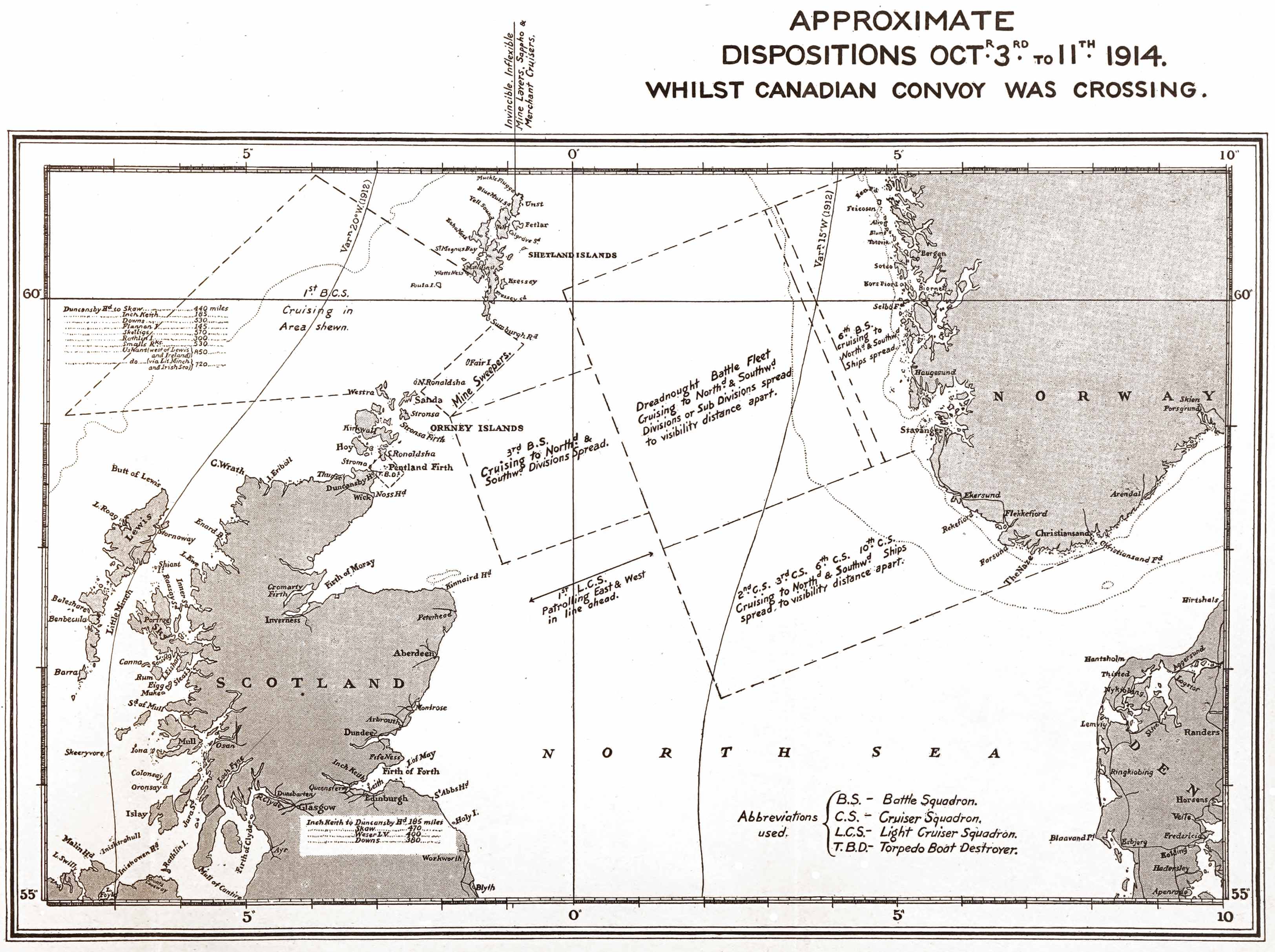 | 4. | Approximate Dispositions, October 3rd–11th, 1914, Whilst Canadian Convoy Was Crossing | 138 |
