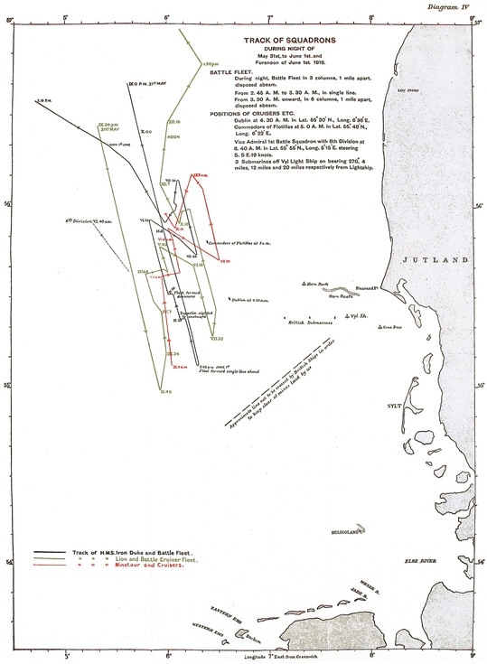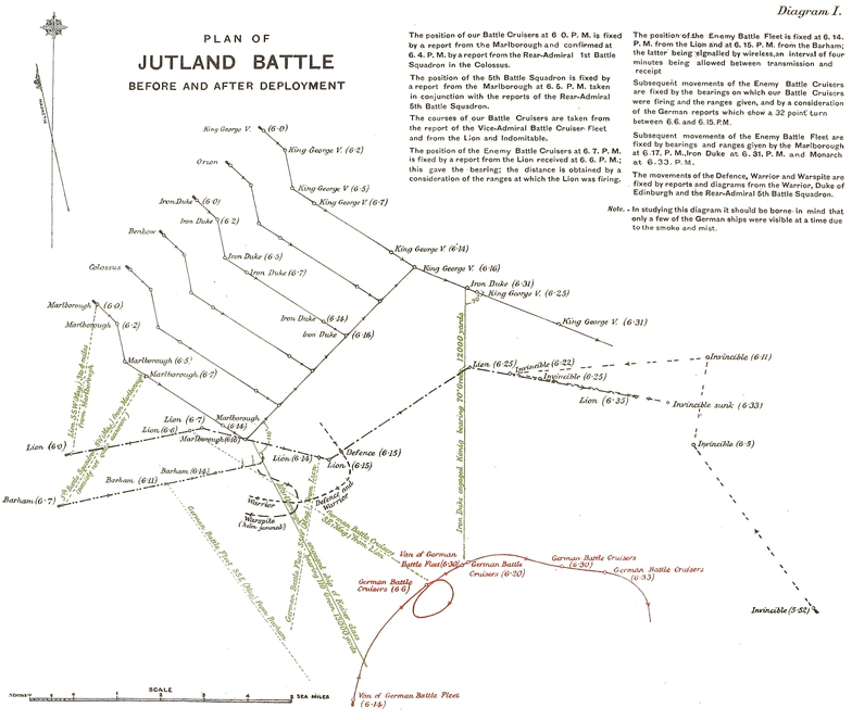 The movements of the Defence, Warrior and Warspite are fixed by reports and diagrams from the Warrior, Duke of Edinburgh and the Rear-Admiral 5th Battle Squadron.