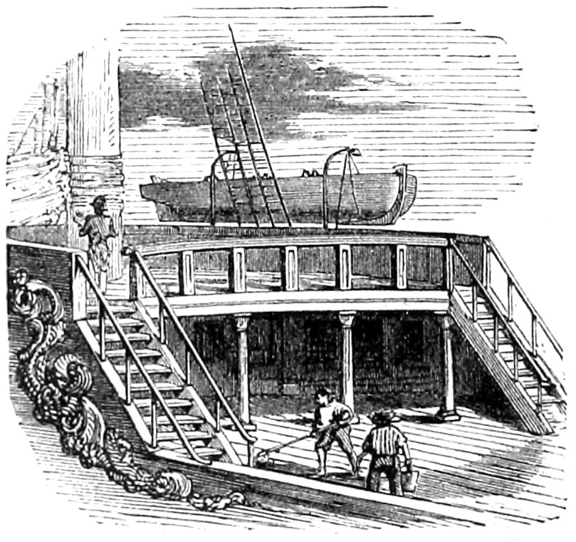 But come there no last words from the gallant Captain, who, since Sunday, has had no sleep, and who has not even changed his clothes? Where is he while farewells are being exchanged, while the little boat is being filled with all it can hold, and while his beautiful vessel, which once seemed to walk the waters like a thing of life, is so fast filling, that her bulwarks nearly touch the water?