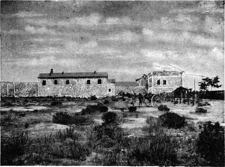 Fig. 7. — Aïn Sefra. — La redoute et les casernes, vue prise de la partie inférieure de la dune