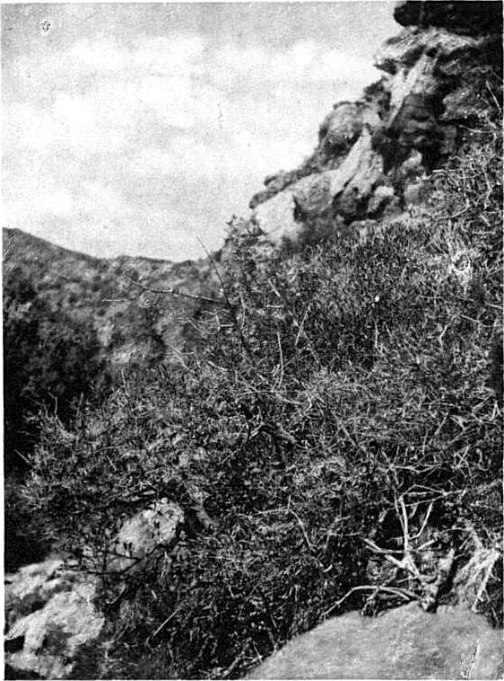 Rochers à genévriers et chênes-verts, abritant : Santolina rosmarinifolia, Inula montana, Filago Heldreichii, etc. Alt. ca. 1950 m., versant N.-W.