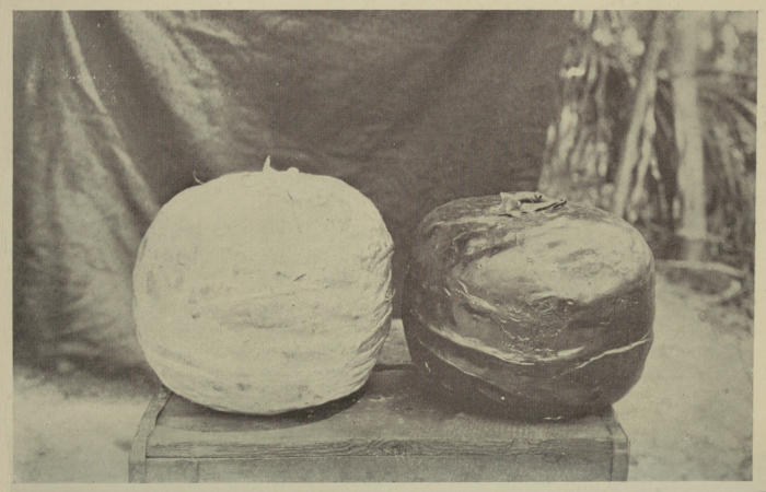 “The milk of the ulequahuitl is obtained by beating the tree with a small hatchet. The liquid is then seen to ooze out from the incision made like blood from a wound. The natives gather it into dry hollow gourds of various sizes. It gradually takes consistency in these receptacles, until it turns into a gummy mass, from which it is easy to adapt it to any form which may be required.