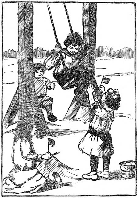 “Oh, goody! Let’s do it!” cried Johnny and Tommy together, like twins, you know, only they weren’t, of course.[2] They jumped up very quickly, and followed Mary out of the house.