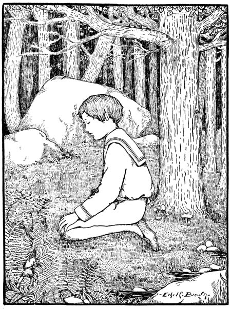 “Dear fern!” he cried. “Dear woodsy fern! How sweet you smell. Dear moss, how[126] soft you are! Dear fragrant earth, made of dead leaves and all the ripe finished things of the forest! Oh, I am myself once more. Dear boy, you have made me very happy.”