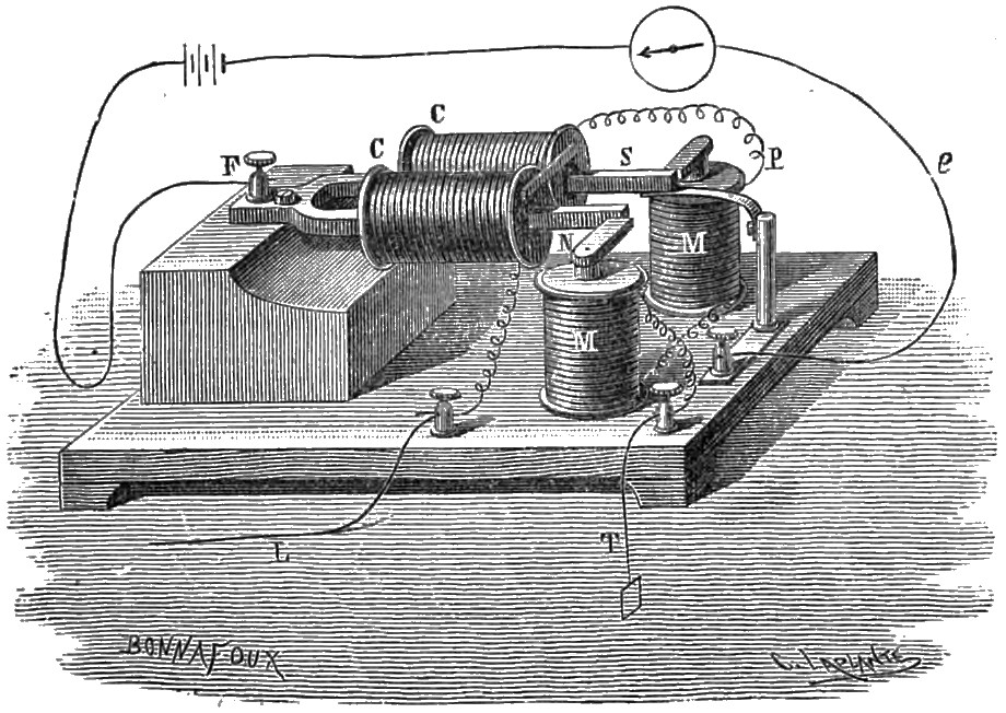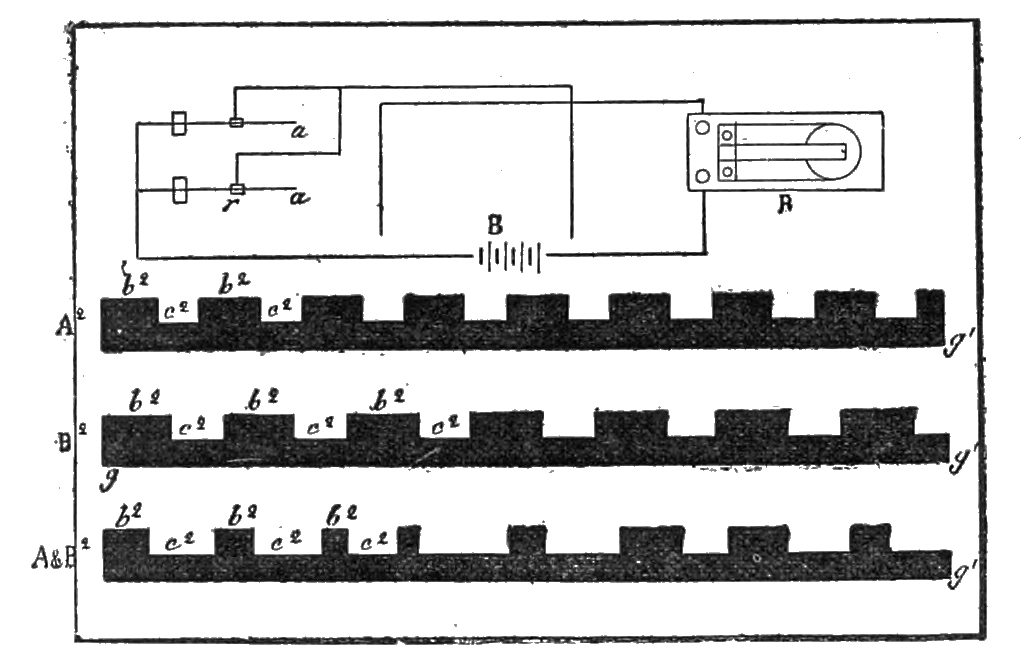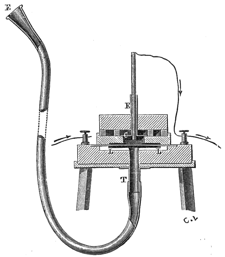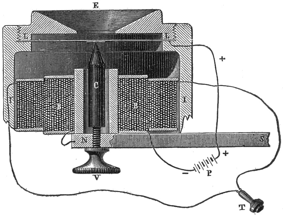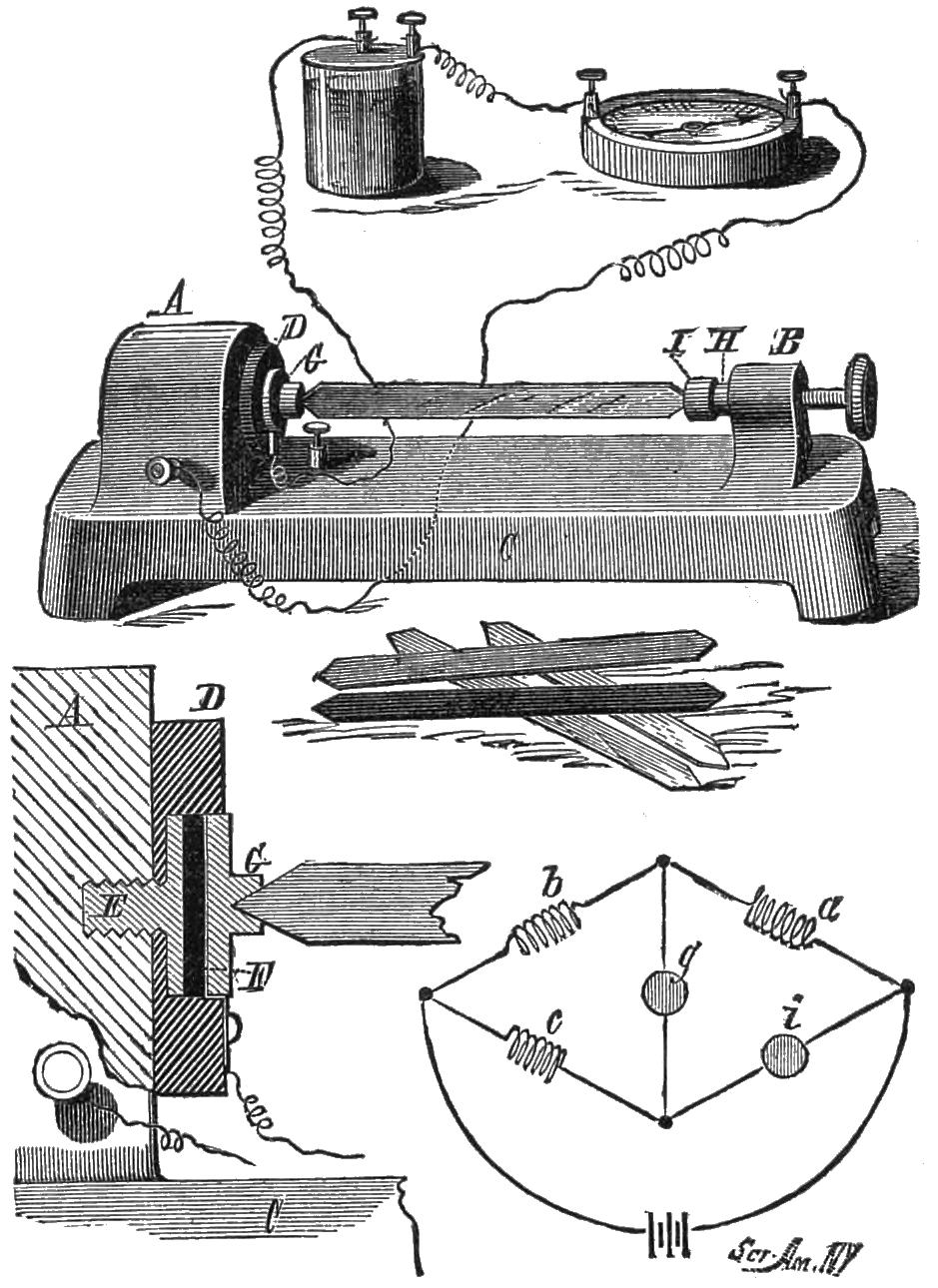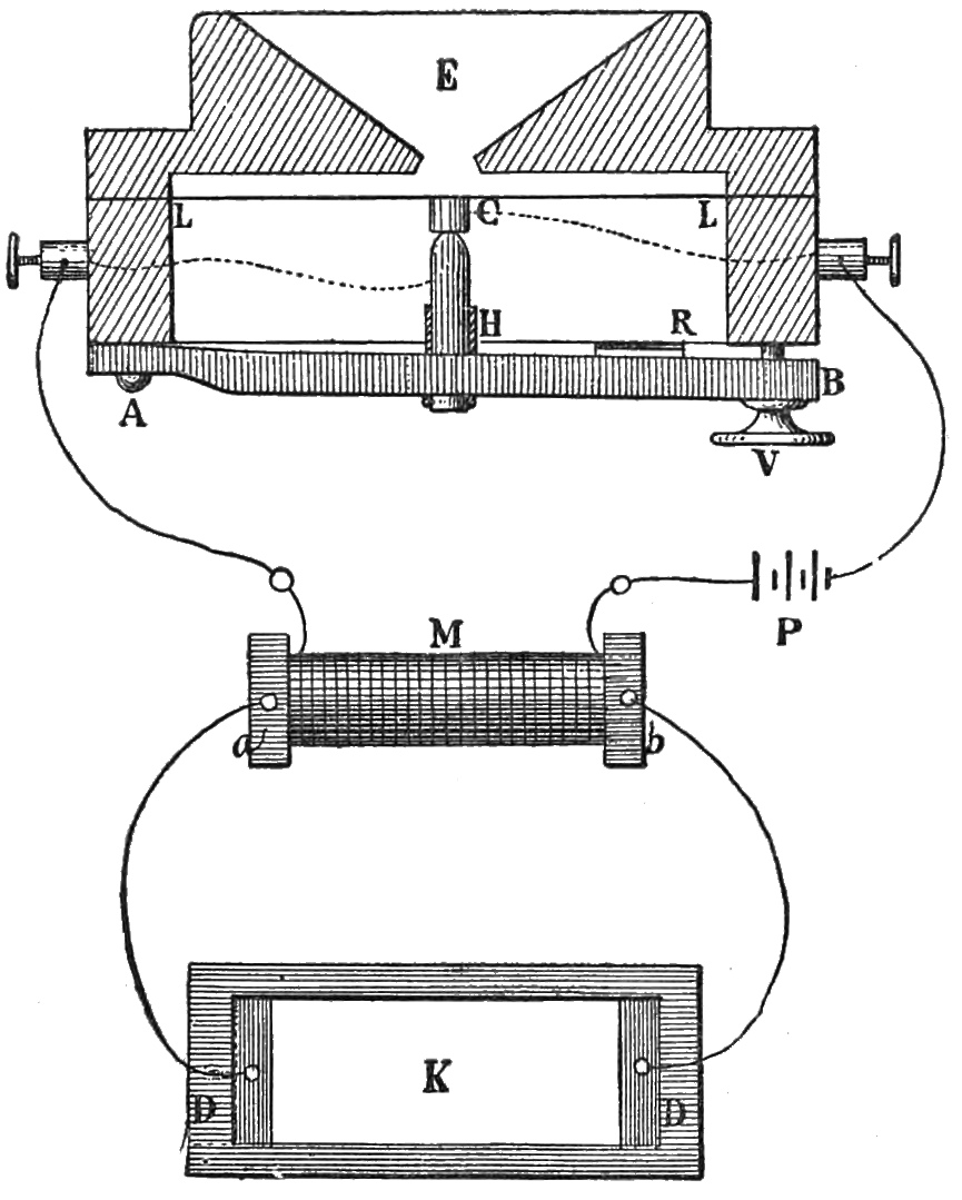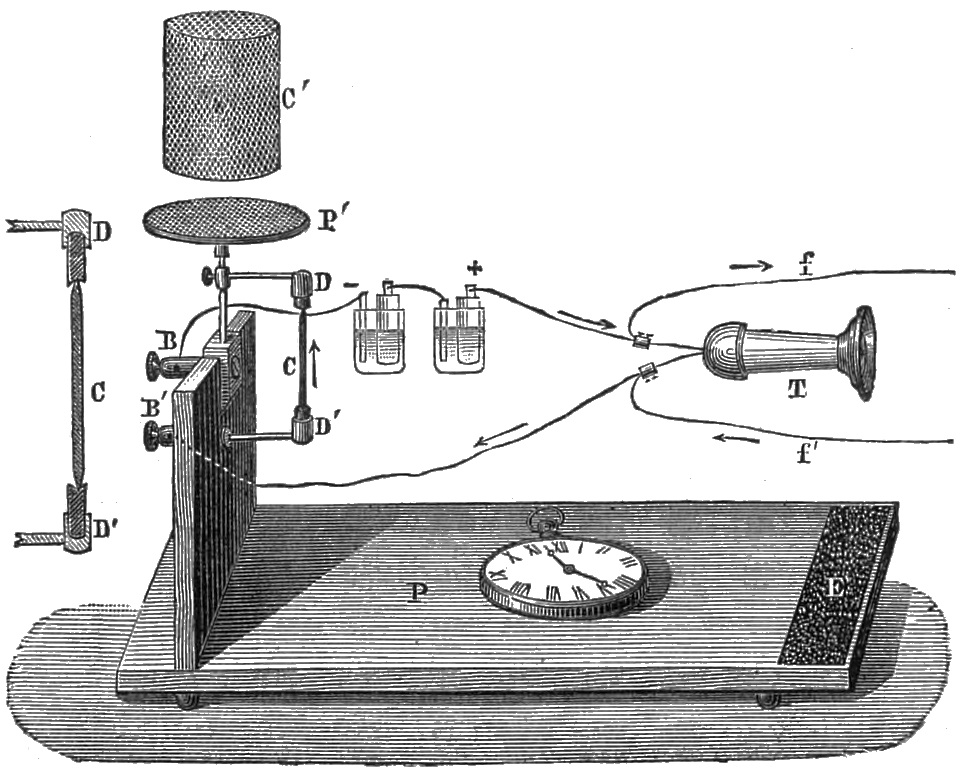 2 He cites the following names in his account of electric telephony:—Page, Marrian, Beatson, Gassiot, De la Rive, Matteucci, Guillemin, Wertheim, Wartmann, Janniar, Joule, Laborde, Legat, Reiss, Poggendorf, Du Moncel, Delezenne, Gore, &c. Vide Mr. Bell’s paper, in the Journal of the Society of Telegraphic Engineers in London, vol. vi. pp. 390, 391.