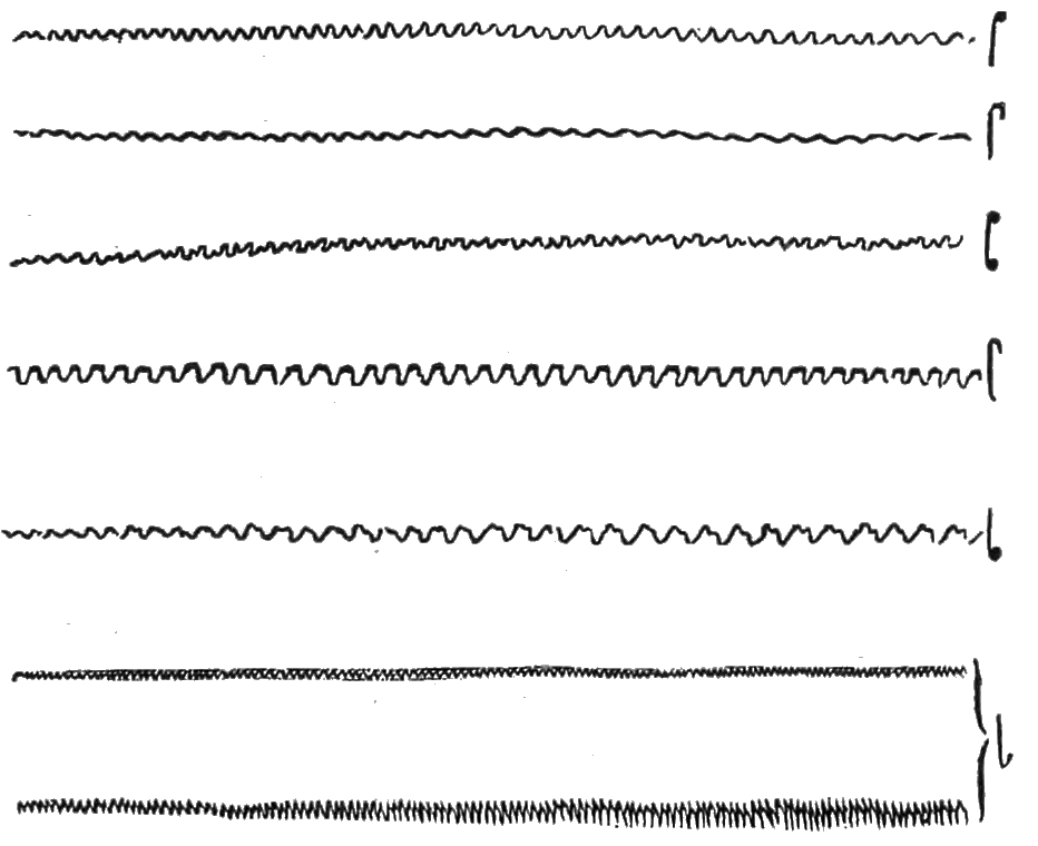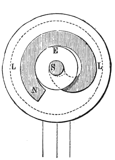 ‘The spiral tracing represents equal successions of time by increasing or decreasing lengths. There is no inconvenience in this, since the turns of the spiral are very close together, if only the circumference of the turning circle is used; but then the central surface is lost.