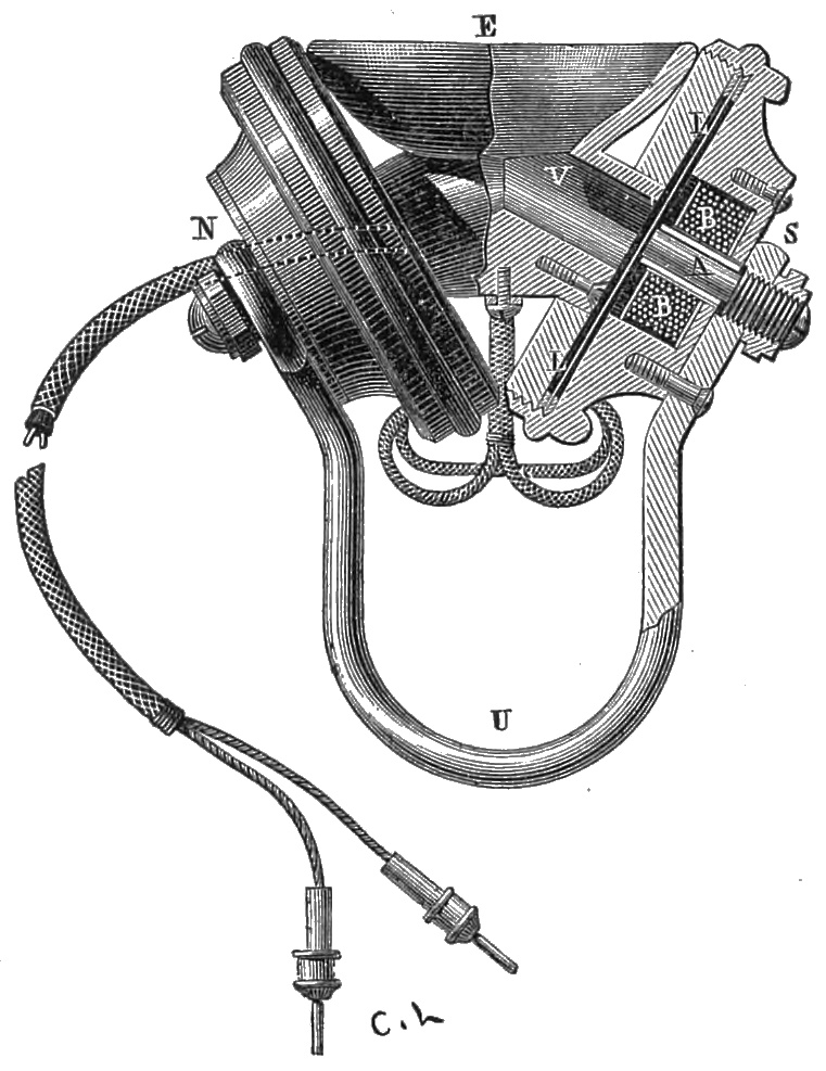 Further remarks on the theory of the Telephone.—Following the example of a certain sceptic in the Académie des Sciences, Colonel Navez continues to maintain the theory first formed as to the mode in which the telephone acts, in spite of the clearest proofs of its insufficiency; but most scientific men who consider the question have come round to our opinion, and admit the concurrence354 of several causes in the reproduction of speech by this remarkable instrument. Mr. Fleeming Jenkin writes to this effect in the new edition of a treatise on Electricity and Magnetism.