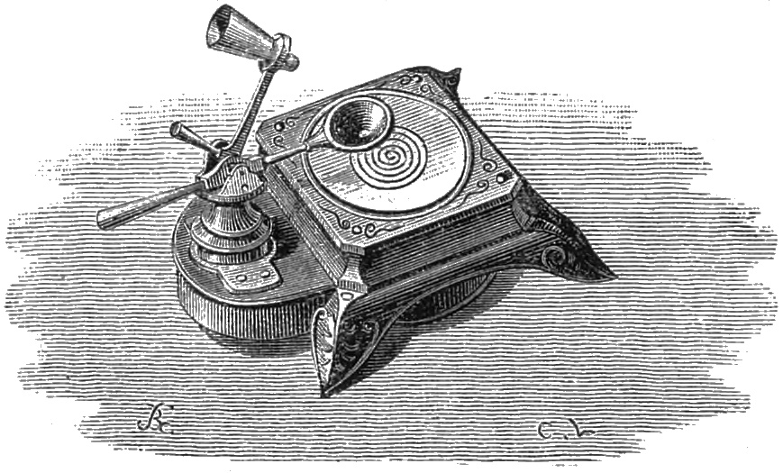 19 I give the text of M. Cros’ sealed paper, opened by his request, at the Académie des Sciences, December 3, 1877:—‘Speaking generally, my process consists in obtaining traces of the movement to and fro of a vibrating membrane, and in using this tracing to reproduce the same movements, with their intrinsic relations of duration and intensity, either on the same membrane or on one adapted to give out the sounds which result from this series of movements.