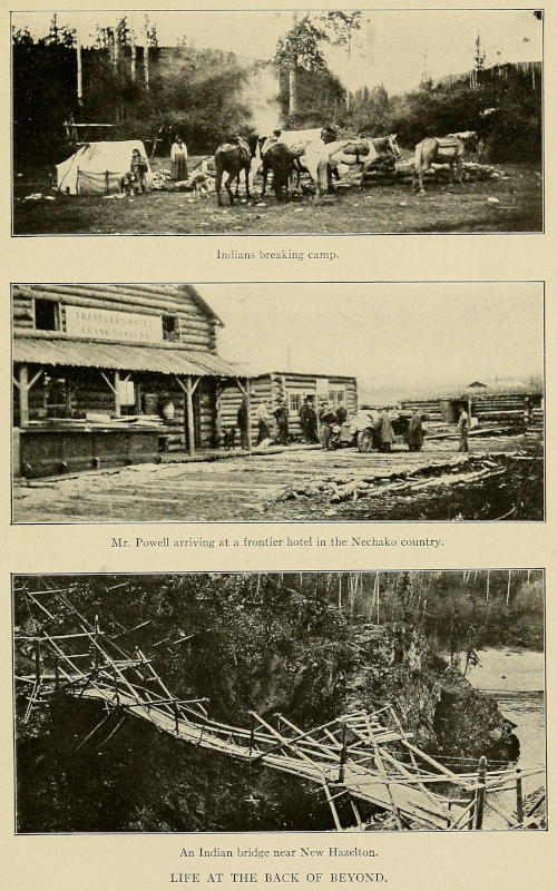 New Hazelton is in the very heart of northern British Columbia, where the Skeena, the Babine, and[440] the Bulkley meet, and in the same latitude as the lower end of the Alaskan panhandle.