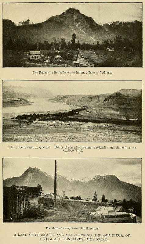 It was my introduction to a scale of frontier prices to which I soon became accustomed though not reconciled. It is only fair to say, however, that this was before the completion of the railway. Now that Fort Fraser is a station on a transcontinental system, the cost of living has doubtless been materially reduced, though I have no doubt that the scale of prices just quoted still obtains and will for a very long time to come in the settlements to the north of the Skeena.