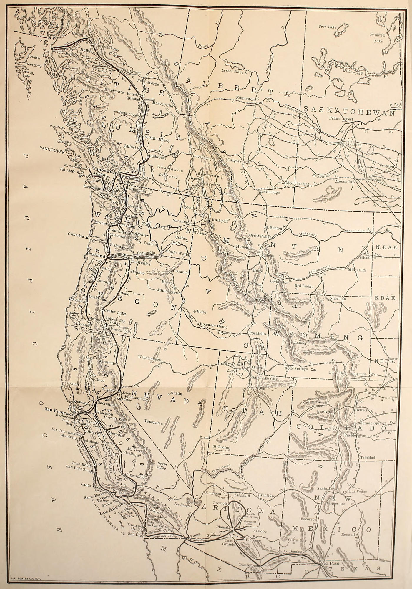 MAP OF THE FAR WEST, FROM NEW MEXICO TO BRITISH COLUMBIA, SHOWING THE ROUTE FOLLOWED BY THE AUTHOR