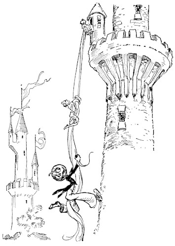 "No, it was the flagon," explained Jack, "the forbidden flagon reduced them to midgets. But what became of Belfaygor's beard!"