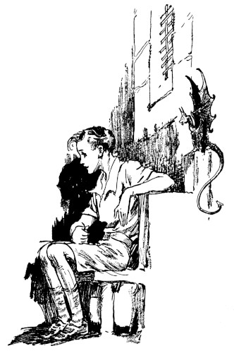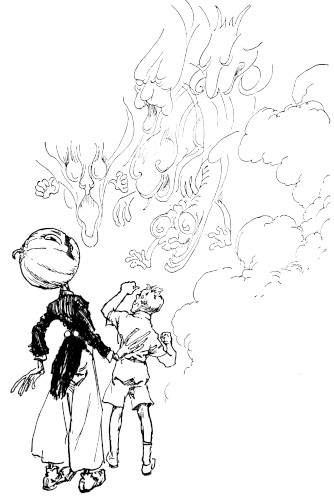 "Whee! Whee—ee! We do!" A hundred high voices answered his question. They seemed to issue from the chimneys themselves, and as Jack and Peter peered anxiously upward strange smoky figures began to spiral out of the chimney tops and float in a dark mass over their heads. They looked like evil genii or goblins who had long been imprisoned in magic bottles. Their shapes and faces changed constantly and as a whole horde of them dropped downward, Peter stepped closer to Jack. "They're only smoke," he explained reassuringly.