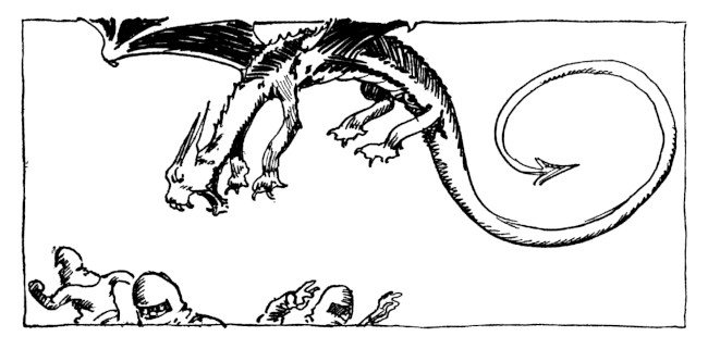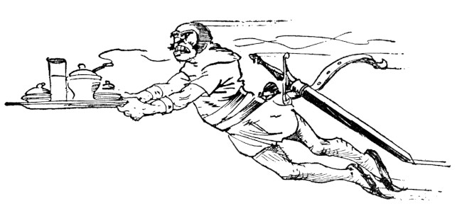 "Don't mind us," begged the Iffin, glaring around the banquet hall. "Keep working! Keep working. I'll help you!" And help he did, with teeth, tail and claw.