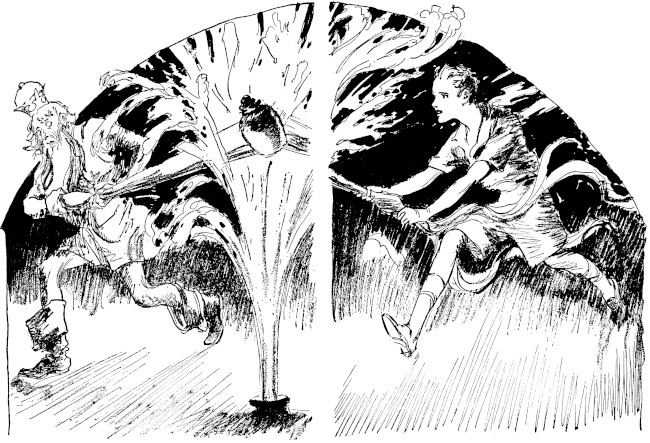 "It was the forbidden flagon," explained Jack, as Ozma dropped into a chair and looked in complete bewilderment at the brownie baron and his band. "Is anyone hurt? Did I come in time?"