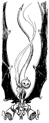 "We won't," cried Jack Pumpkinhead defiantly, "we won't come or become. If this is Chimneyville, then you are Chimney-villains. Go away you black monsters. We refuse to visit your old Sooty. Go away, go away. You're smoking my beautiful head." Trying to cover his head with his arms, Jack backed against a chimney, but his words only seemed to infuriate the Smokies. Swelling with rage, they surged forward.