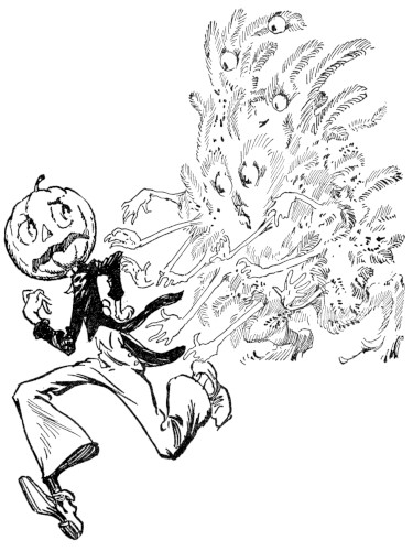 "Yes, dear Peter," quavered Jack, "but smoke is most injurious to pumpkins! Oh my head! My poor poor head!" Peter had no time to sympathize with Jack, for at that moment a crowd of Smokies surrounded them. Their eyes were spite-red sparks and, snatching at Peter and Jack with their long shadowy arms, they began to hiss and puff threateningly.