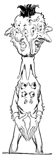 "Oh look out!" he called warningly, for the man's head seemed ready to fall off, was falling off, in fact.
