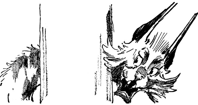 At this, the owner of the house, in order to have a better look at his visitor, leaned so far out the window that Peter gave a sharp cry.