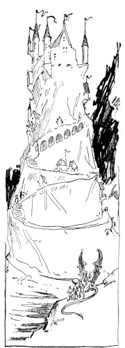 In the kitchen another banquet was soon under way, more and more candles were lighted and soon the castle began to reflect its old time cheer and friendliness. Little gasps and exclamations of astonishment punctuated Jack's recital and he had to tell over and over how they had escaped from Baffleburg, how Snif had dwindled down when he ate the shrinking violet; how Belfaygor's enchanted beard had helped them out of difficulty and how the mischievous pirate sack had swallowed three of the company, when they were needed most of all. Peter, Belfaygor and Snif were as interested as the others in Jack's visit to the Red Jinn and in the advice that jolly wizard had given.