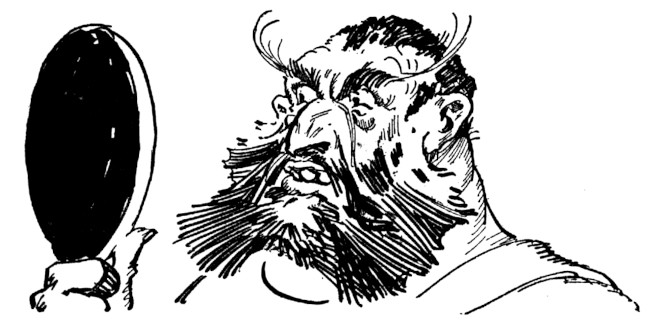 "Call this a battle," wheezed Bragga to Mogodore, "are there to be no hangings, no bon fires, no killings of any kind? You promised us a real war. This is as tame as a taffy pull." Tugging discontentedly at his long mustache, the Captain of the Guard looked sulkily at his chief.