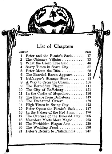 Dear Boys and Girls: Did YOU ever hear of the Land of the Barons, of a Red Jinn or the City of Scares? Well, neither did I! Neither did Jack Pumpkinhead. But there they were all the time, and trouble brewing for everybody. And speaking of Jack Pumpkinhead, I've always suspected he was brighter than he appeared to be and had more in his head than pumpkin seeds and now I'm convinced of it.