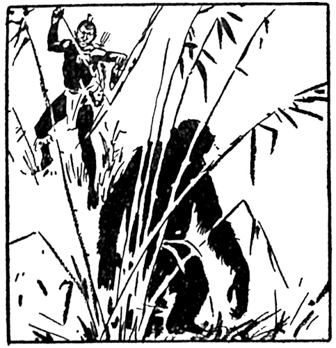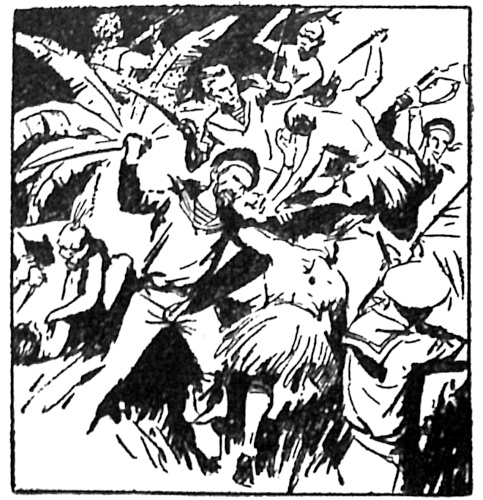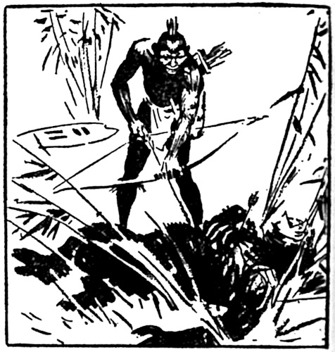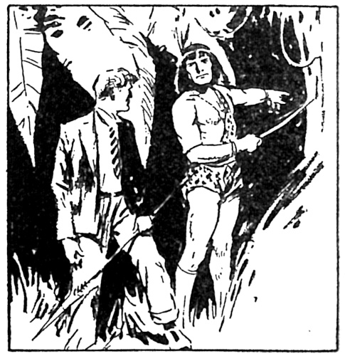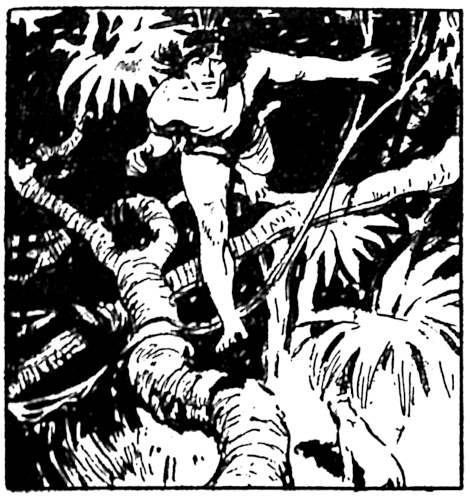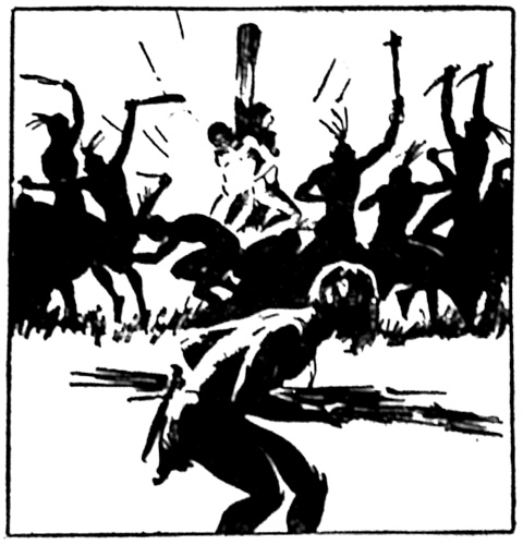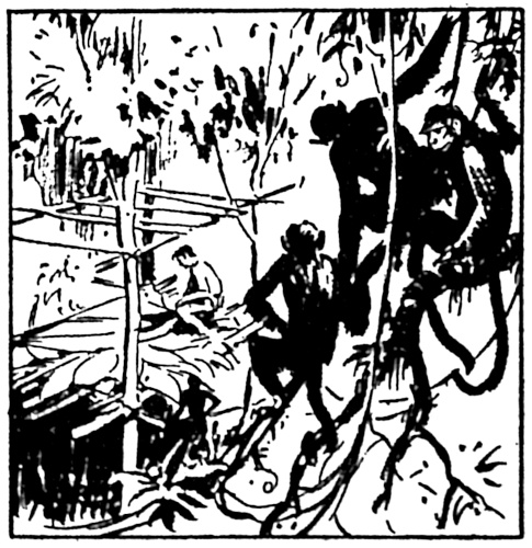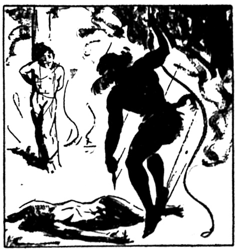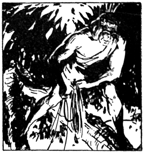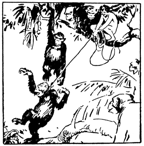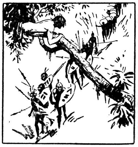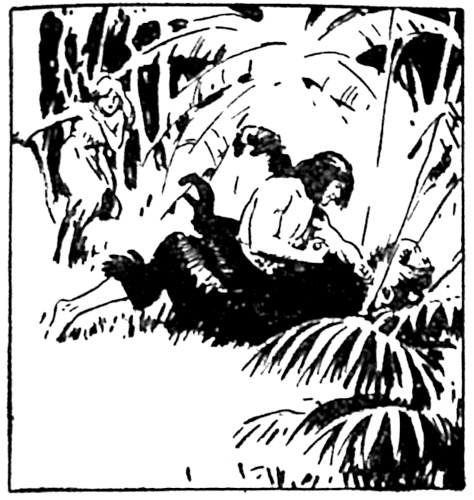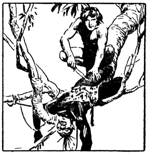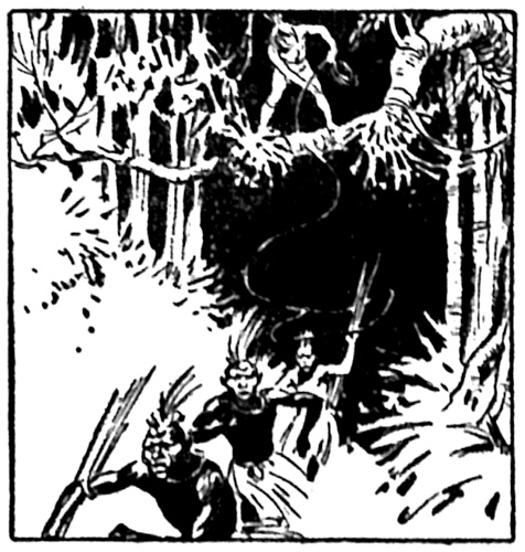 The rope sped with singing whir above the blacks' heads. A huge fellow lunged backward; struggling and shrieking, his body moved toward the trees. Then straight into the air, disappearing into the foliage. The blacks, screaming with fright, raced madly for the village gate. D'Arnot was left alone!