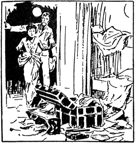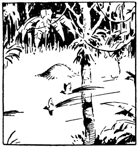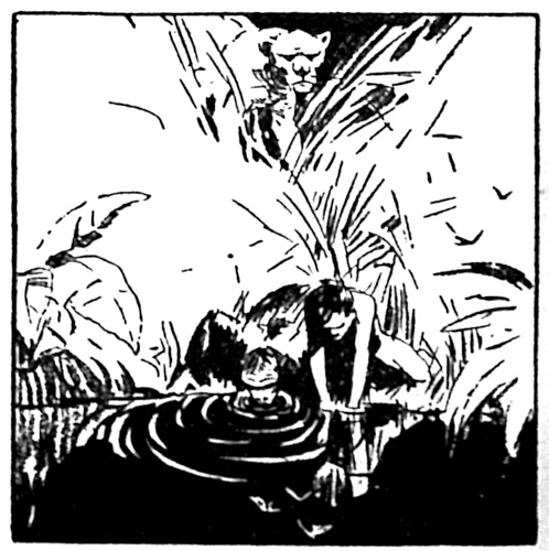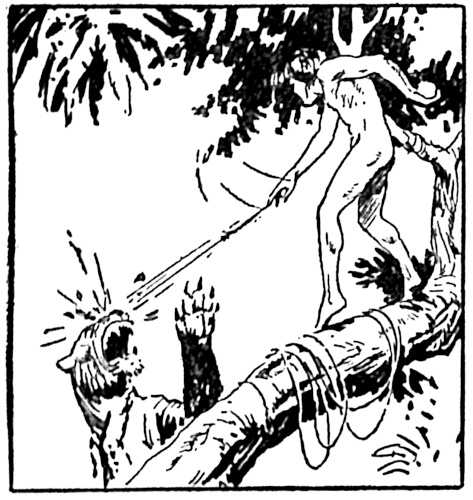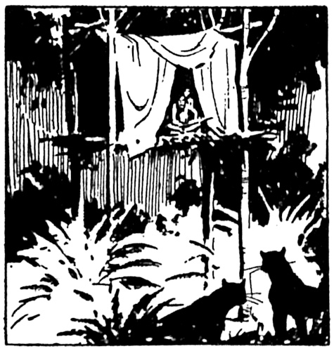 Scarcely had they closed their eyes than the terrifying cry of a panther rang out from the jungle. Closer and closer it came until they could hear the great beast directly beneath them. For an hour or more it sniffed and clawed at the trees that supported their platform.