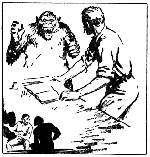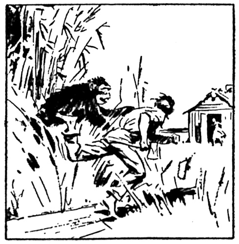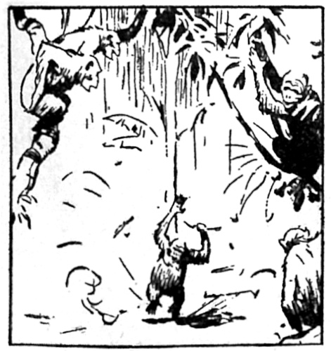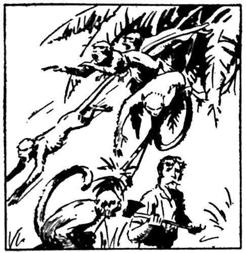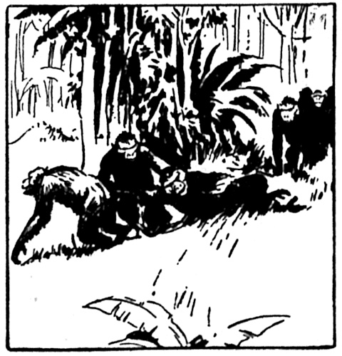 A sharp lookout was kept while they worked, and once they saw their little simian neighbors come screaming over the near-by ridge, and casting affrighted glances over their shoulders, evincing as plainly as though by speech that they were fleeing some terrible thing that lay concealed there. What was it?
