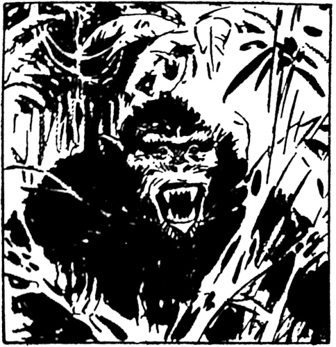 It was approaching through the jungle—a great anthropoid ape—and as it advanced it emitted deep guttural growls and an occasional low barking sound. Greystoke, who was at some distance from the cabin, was armed only with an axe, and the ferocious monster cut him off from escape to his retreat.