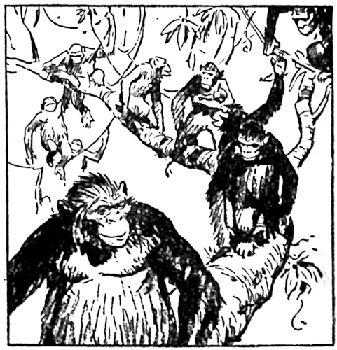 During the day the forest about them had been filled with excited birds of brilliant plumage, and dancing, chattering monkeys, who watched these new arrivals and their wonderful nest-building operations with every mark of keenest interest and fascination. By dusk the snug shelter was completed.