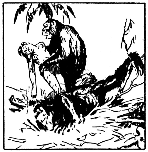 Came a sharp report and a bullet entered the ape's back! The beast turned upon its new enemy. Lady Greystoke, terrified, tried to fire another bullet. Greystoke, regaining his feet, rushed to drag the ape from his wife's prostrate form. The bullet had done its work! The ape was dead.
